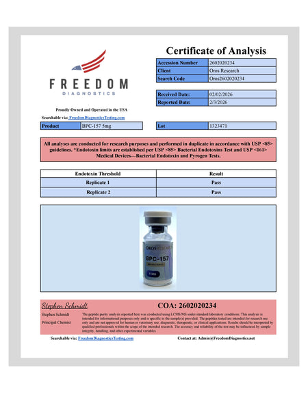 This product is supplied as a lyophilized powder and is intended strictly for research use only. Researchers are solely responsible for the appropriate reconstitution of all OROS research compounds. Bacteriostatic water is sold separately. We do not sell syringes, nor do we provide instructions on mixing, dosing, or any research protocols.