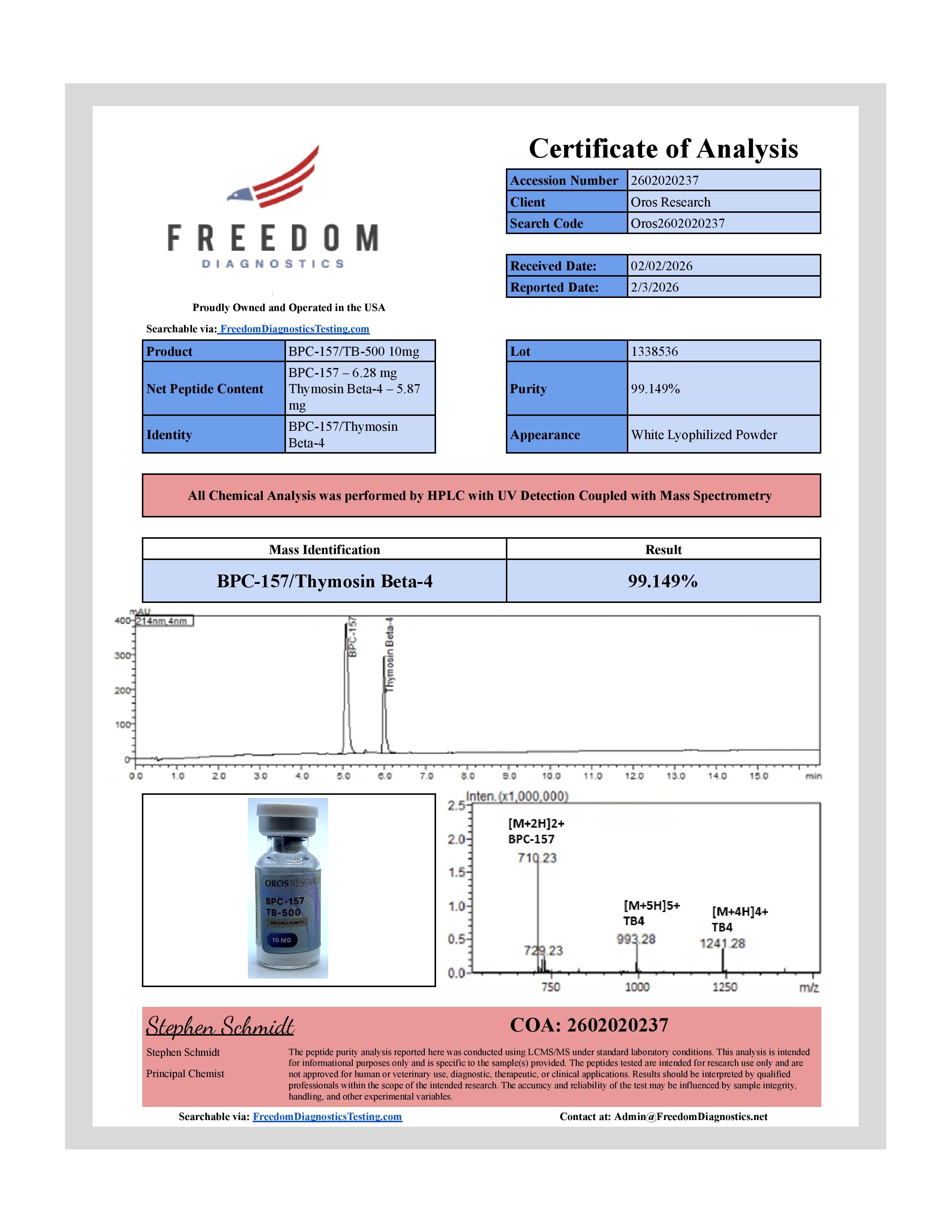 At OROS, we manufacture our peptides in California in an ISO 5 Laminar Flow Facility following cGMP standards, ensuring every product meets the highest standards of purity, and precision. We don’t just claim quality, we prove it through rigorous testing and verifiable third-party COAs provided by licensed testing facilities in the U.S.